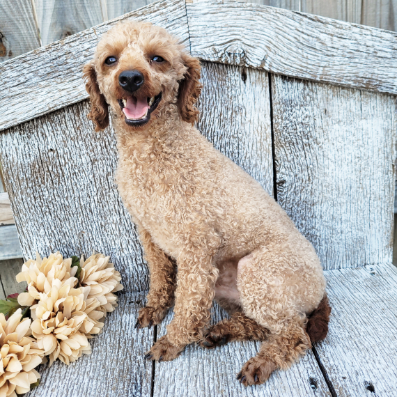 Hi, I’m Zack! I’m an 14-week-old male Poodle with a beautiful red coat, I am ready to plan my trip to my forever home. I can’t wait to bring my puppy joy and cuddles into your home.